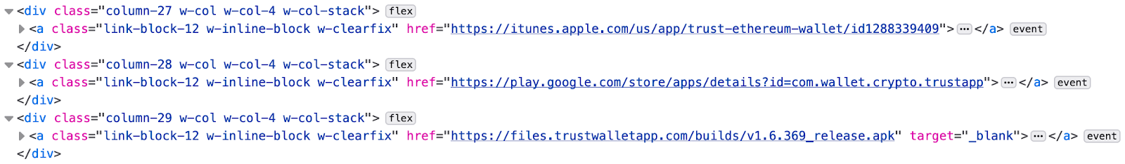 After a recent spate of mobile phishing apps, our first suspicion was that one of the mobile apps being linked to on the website was backdoored — most likely the direct link to the Android APK download. However, after inspecting each of the links, we realized that all of the links were in fact legitimate.
